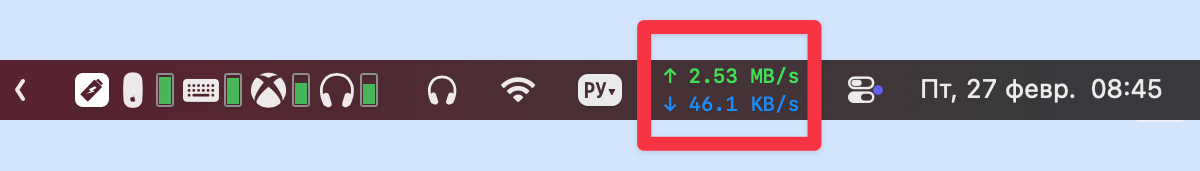 С помощью приложения Netfluss вы сможете добавить данные о скорости сети прямо в Строку меню.