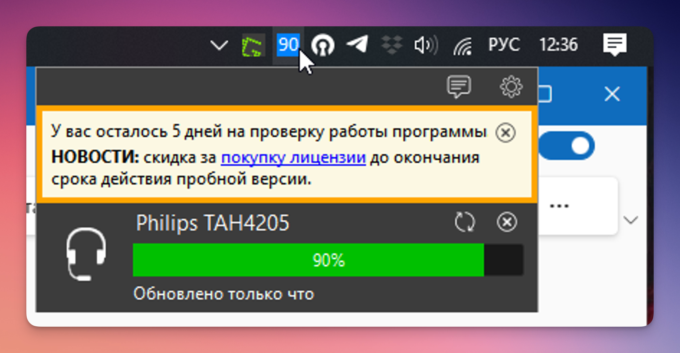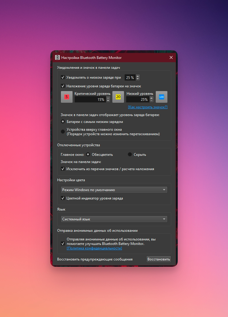 Почему-то в Windows по умолчанию нигде на видном месте не отображается уровень заряда, подключённых по Bluetooth устройств. Что меня очень раздражало, ведь никогда не знаешь сколько ещё продержаться твои наушники или мышь.