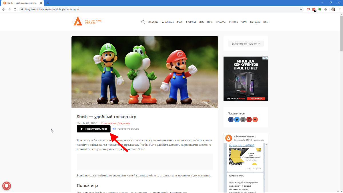 После чего в статьях появится значок воспроизведения аудиоверсии поста: