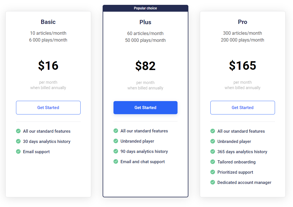 Оплата берётся как за количество статей в месяц, так и за их прослушивание. В моём случае у меня получается меньше 6 000 прослушиваний в месяц, но более 60 статей. Из-за чего я попадаю в тариф за $165 в месяц, вместо $16.