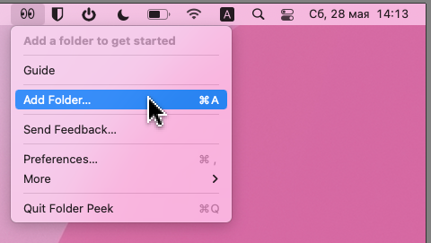 Для работы утилиты нужна версия macOS не ниже 12.3. После установки на панели меню появится новая иконка, в которой нужно выбрать Add Folder и выбрать папку, приложение или файл для добавления.