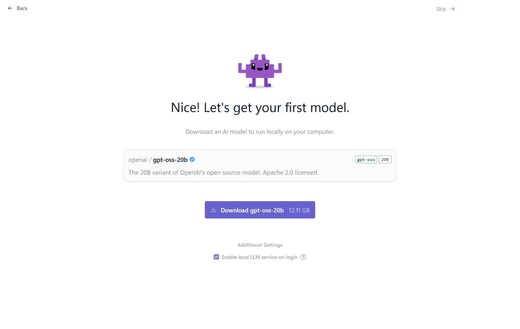 LM Studio при первом запуске проведёт вас по всем необходимым настройкам и предложит скачать нейронку от Chat GPT на компьютер.