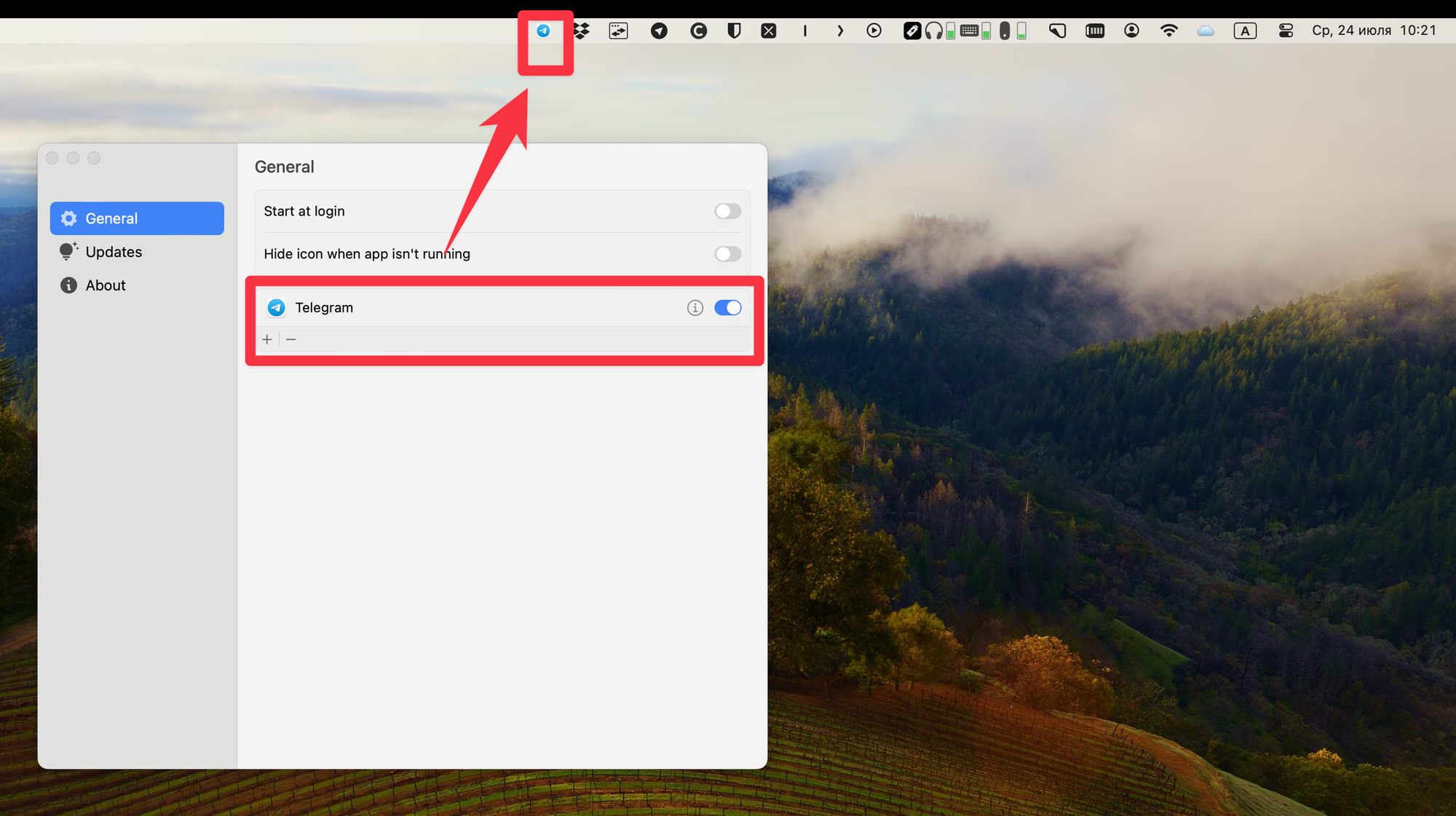 Настроек у утилиты минимум. В разделе General нужно просто добавить приложение, для которого требуется отображать счётчик. После чего вы увидите его иконку в Строке меню.