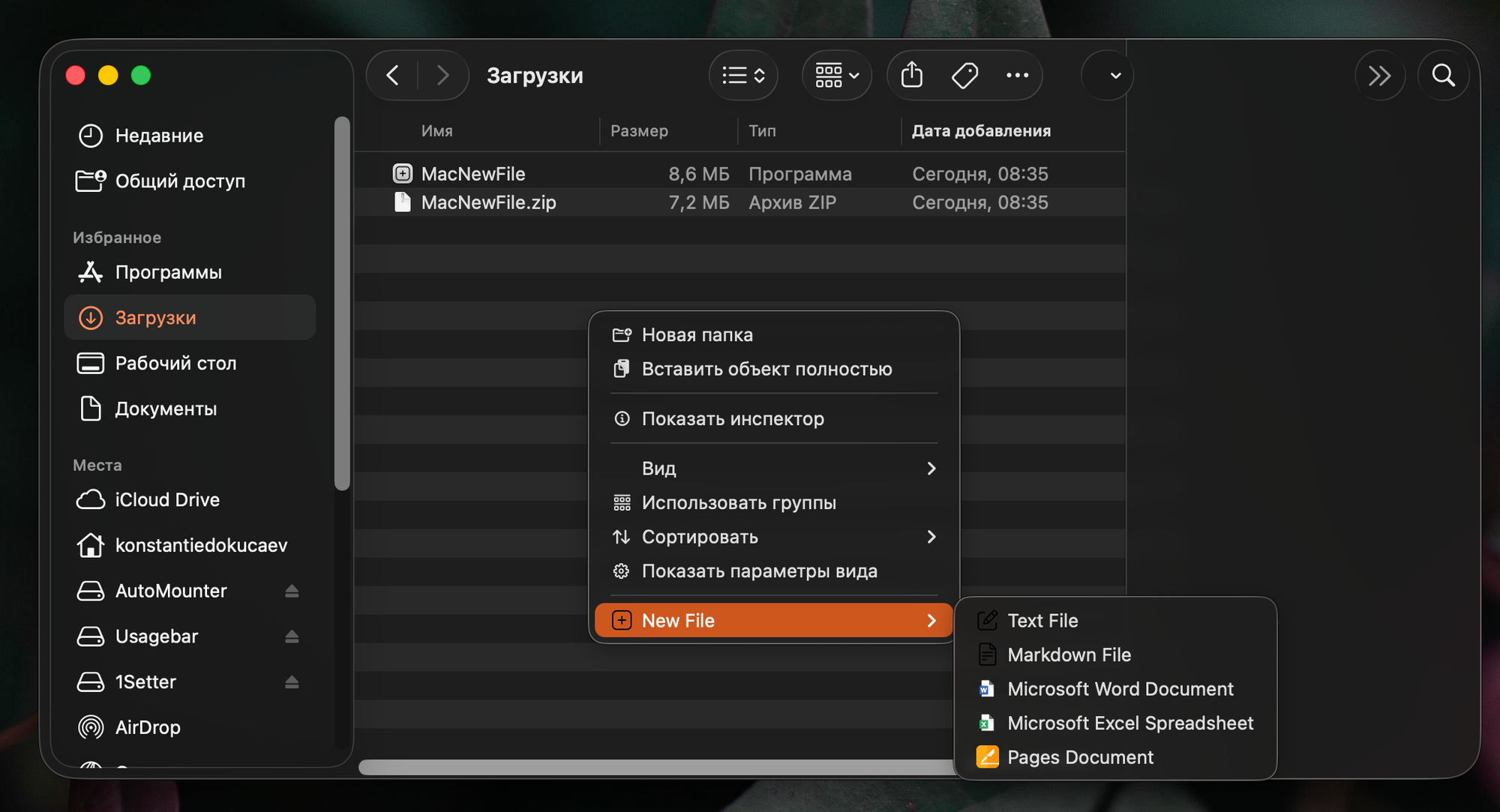 На Windows вы можете создавать новые файлы через контекстное меню правой кнопкой мыши. А вот на macOS такой фишки почему-то нет, но это легко исправить.