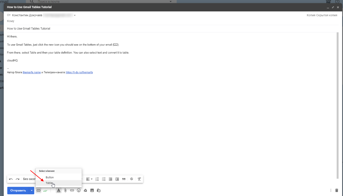 После установки расширения при создании нового письма внизу появится кнопка добавления таблицы.
