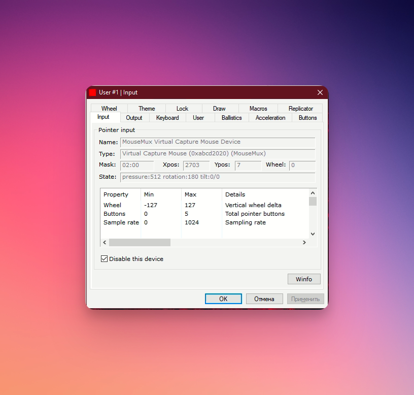 После выбора подходящего способа ввода можно начинать смело пользоваться MouseMux. Но при необходимости можно более тонко настроить поведение каждого из курсоров в отдельном окне настроек с множеством параметров.