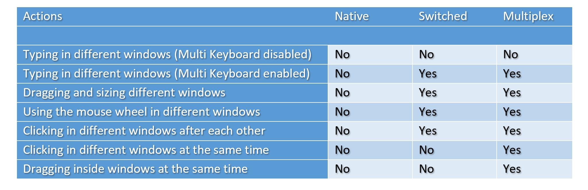 - Switched позволяет работать одновременно нескольким пользователям, и у каждого будет свой курсор. Но вы не сможете одновременно кликать в разных окнах.