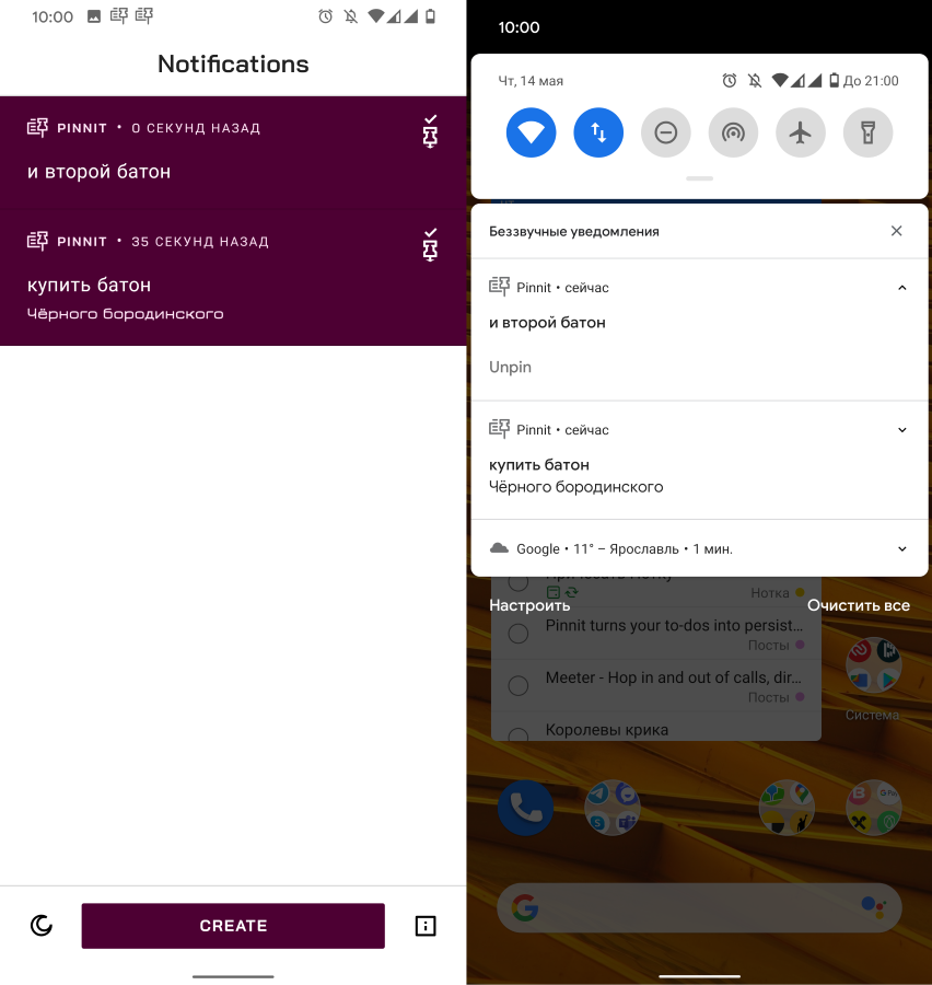 Pinnit позволяет добавлять задачи в шторку уведомлений.