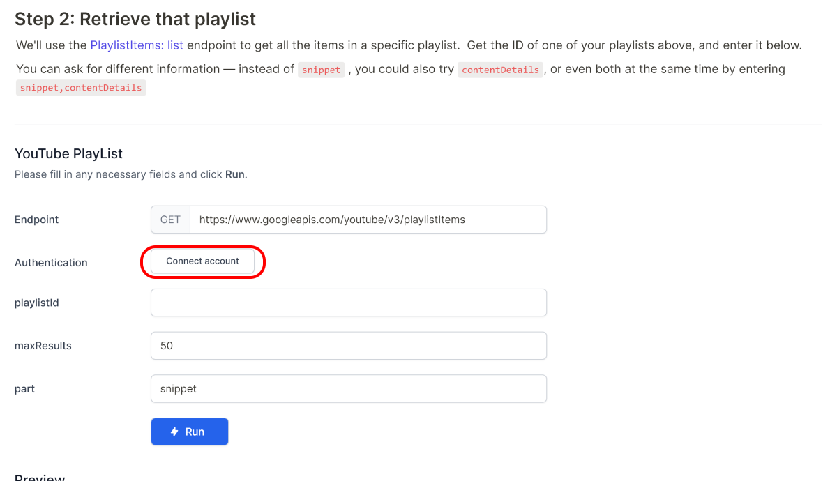 Всё заполнили? Теперь можно нажать кнопку Run, и ниже появится превью с данными из плейлиста.