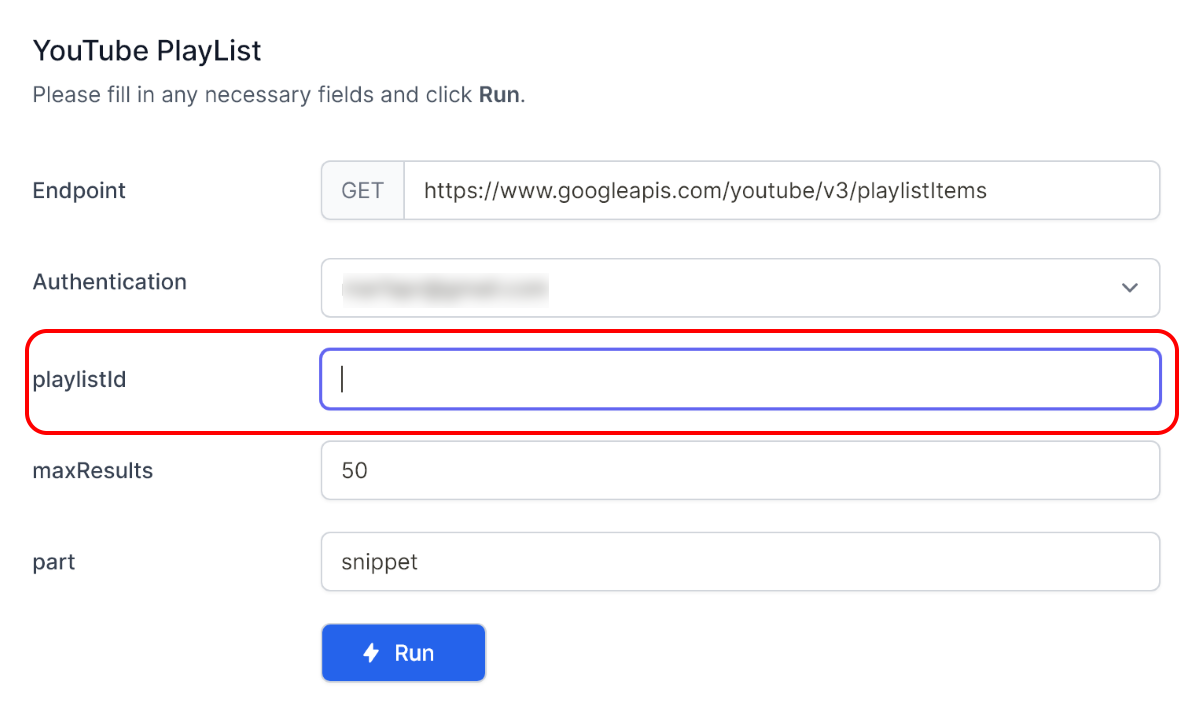 При желании в поле maxResultsможно указать максимальное число видео, которое нужно экспортировать. В поле part можно указать, какую информацию вы хотите экспортировать. В обычном случае хватит дефолтного значения snippet, но можно указать и другие варианты. Для этого я рекомендую ознакомиться со справочной информацией сервиса по этой ссылке.
