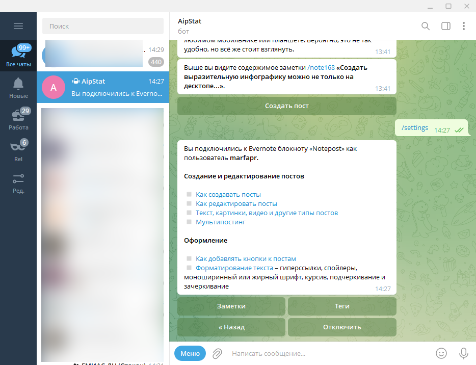 Публикация постов из Evernote в Telegram