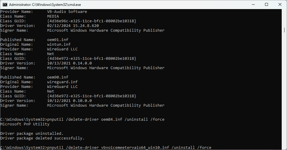 У найденного драйвера скопируйте содержимое поля Published Name и выполните команду pnputil /delete-driver oemXX.inf /uninstall /force, где вместо oemXX.inf укажите содержимое Published Name.