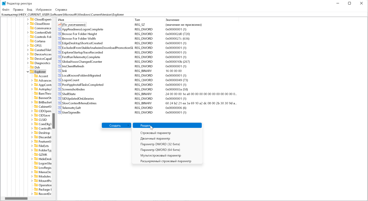 Чтобы изменить его перейдите в редактор реестра. Для этого в меню Пуск > Выполнить наберите regedit и в открывшемся окне перейдите по пути HKEY_CURRENT_USER\SOFTWARE\Microsoft\Windows\CurrentVersion\Explorer