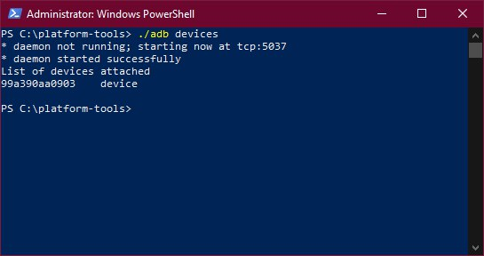 Теперь установите ADB Tools на компьютер. Затем подключите смартфон к ПК в режиме отладки. Запустите командную строку и впишите команду adb devices. Ваш смартфон должен отображаться в списке.
