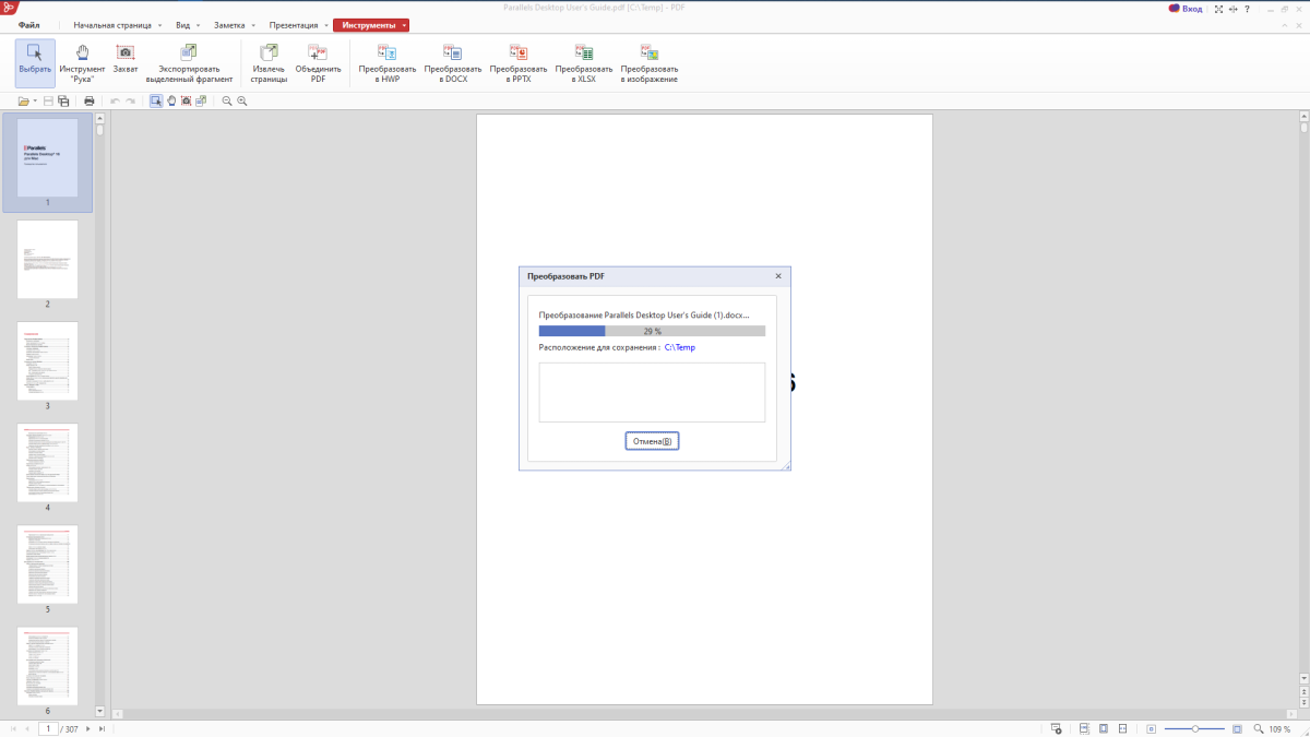 Вот так всего за полминуты я смог конвертировать достаточно объёмный и сложный PDF-документ в текстовый файл формата MS Office и сразу же перейти к его редактированию в удобном для меня приложении.