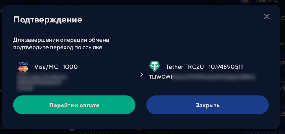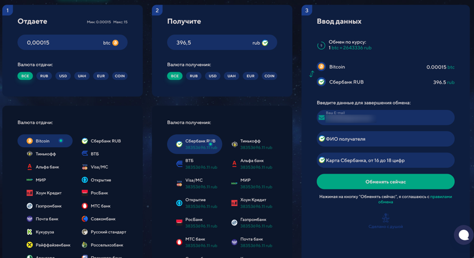 Ввели все данные, нажали на кнопку Обменять сейчас и ещё раз подтвердили все данные.
