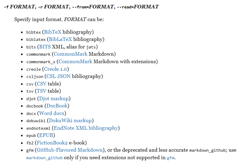 Утилита работает на движке Pandoc, который в целом можно вызвать самостоятельно через командную строку. На входе можно подать любой файл из списка поддерживаемых исходным движком. Их до фига, поэтому рекомендую ознакомиться с ним самостоятельно.