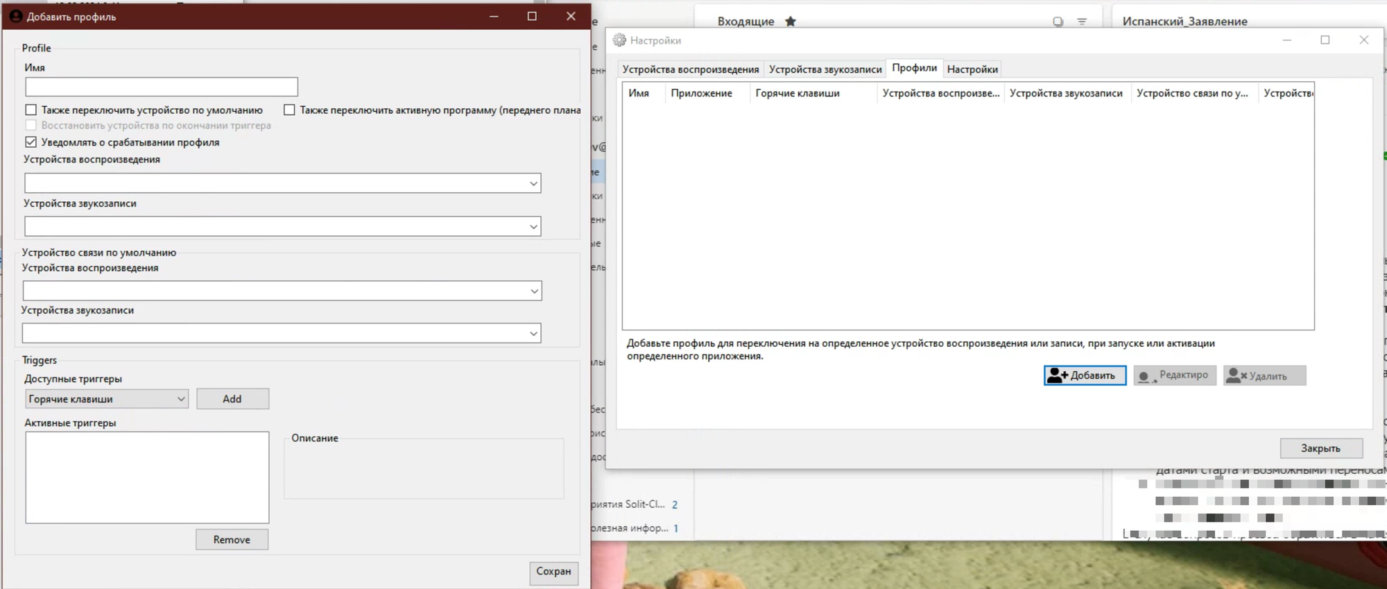 Также на вкладке Профили можно активировать автоматическое переключение на определённое устройство при запуске конкретного приложения.