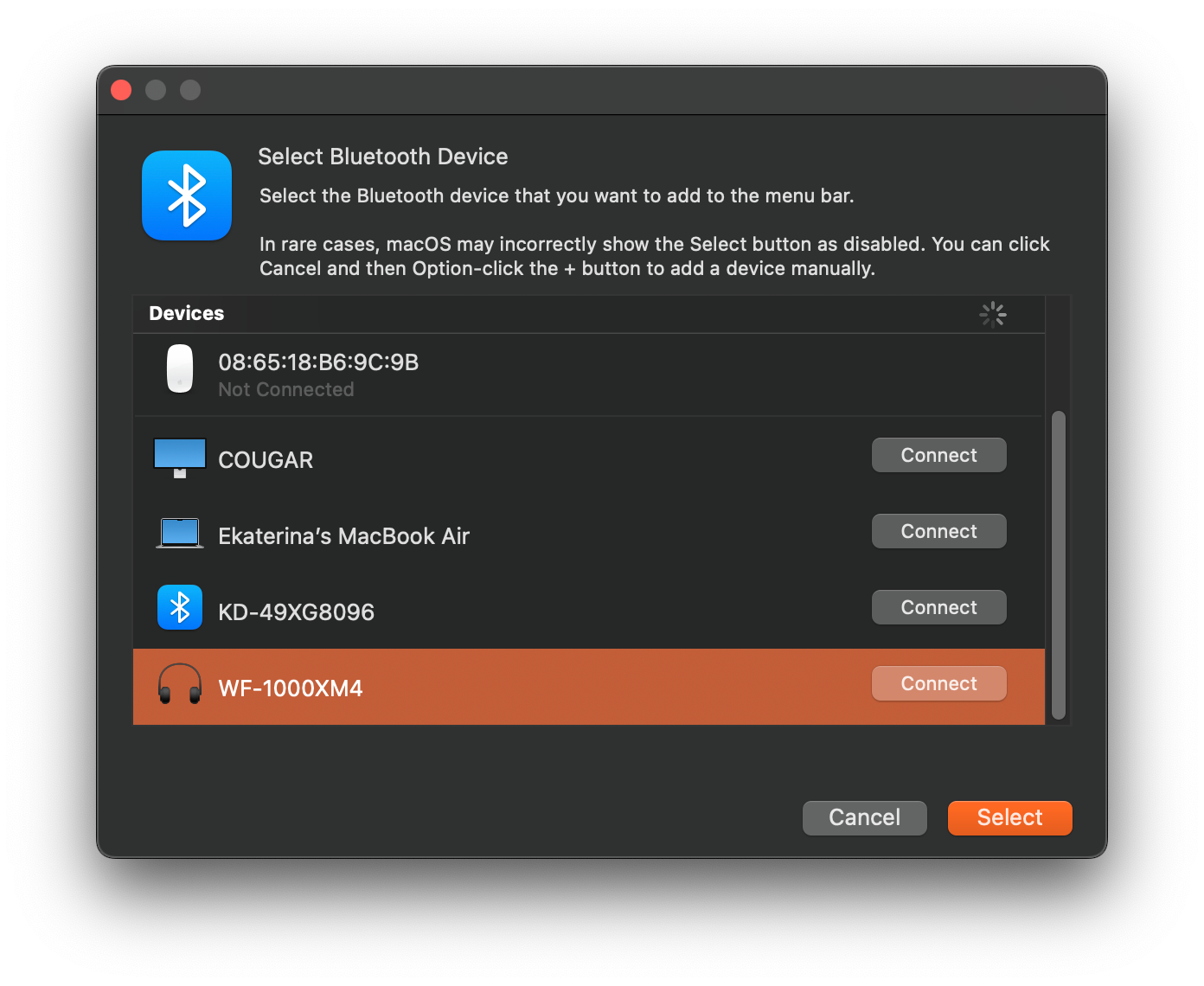 В остальном про существование приложения можно забыть. Как я писал в начале поста, чтобы подключить внешнее устройство, нужно просто кликнуть по иконке в Строке меню и готово.