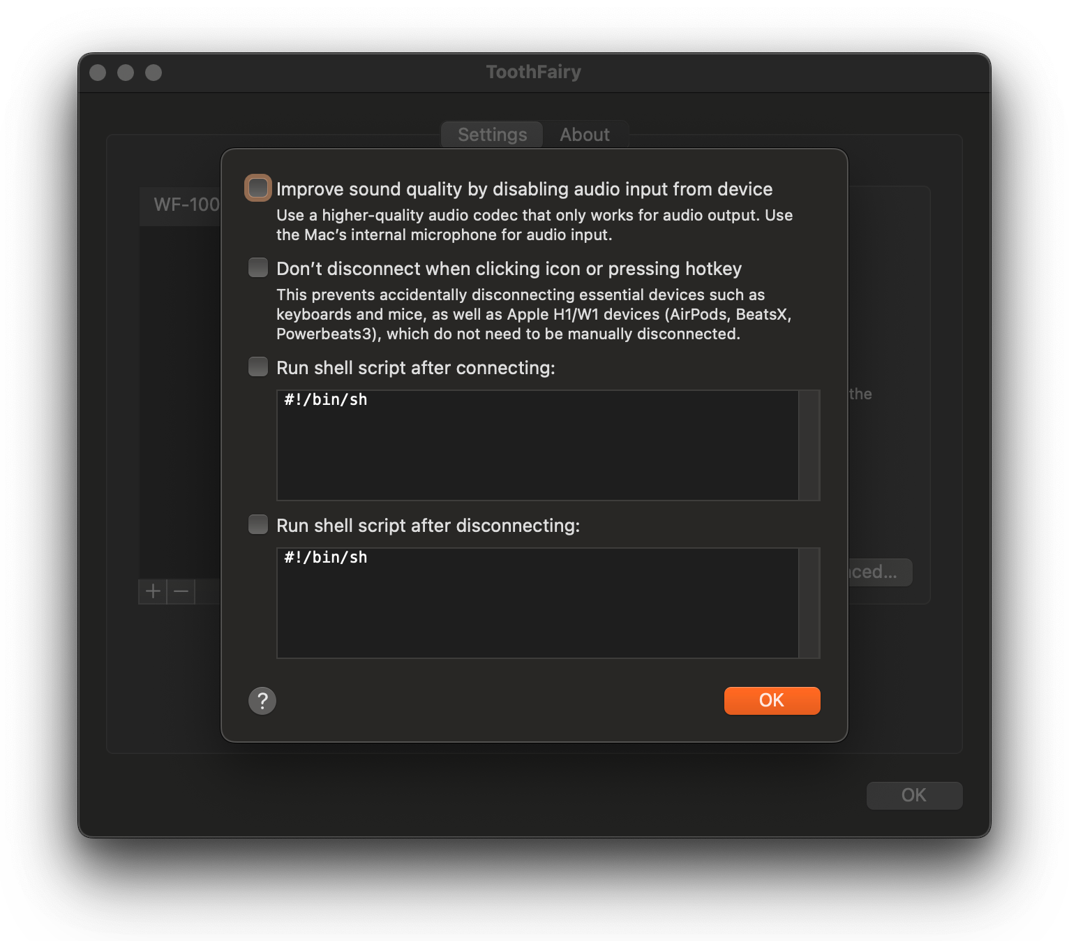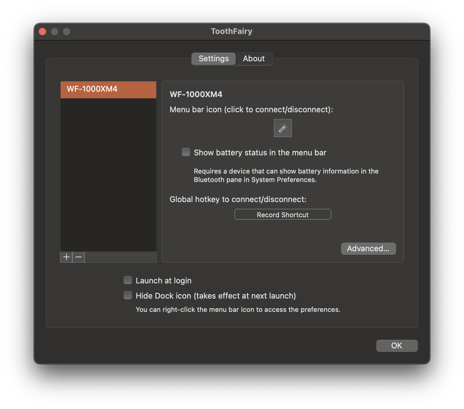В дальнейшем добавлять новые устройства и удалять старые можно через настройки ToothFairy.