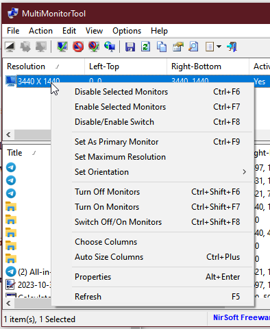 Вы можете выбрать один или несколько мониторов, и с помощью контекстного меню или горячих клавиш производить с ними различные действия.