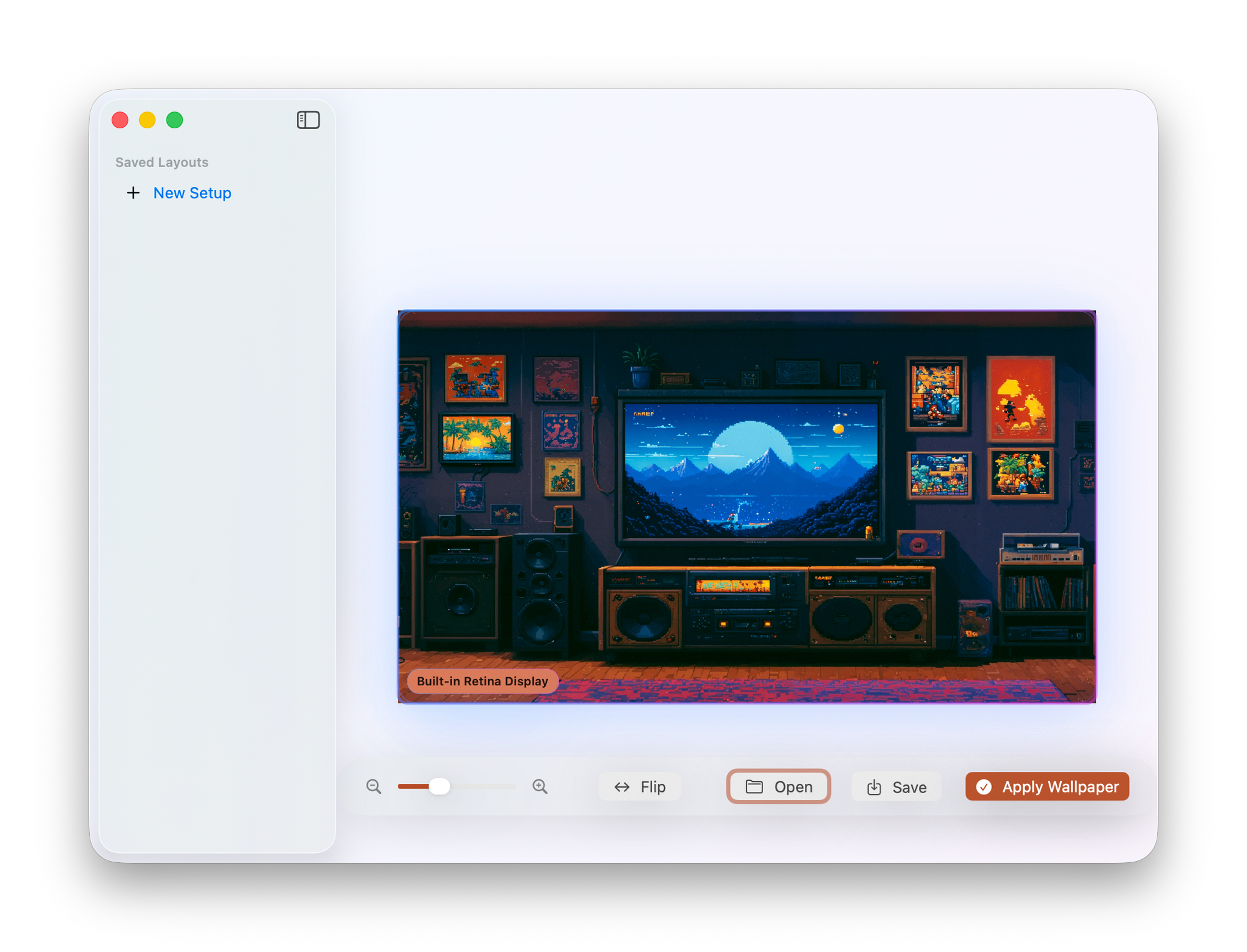 При выборе изображения в SpreadPaper вы можете сразу задать увеличение изображения, сдвинуть его по горизонтали или вертикали, и заранее увидеть все изменения на превью. А когда вы закончите с настройкой, останется нажать кнопку Apply Wallpaper для автоматического размещения обоины на всех мониторах.