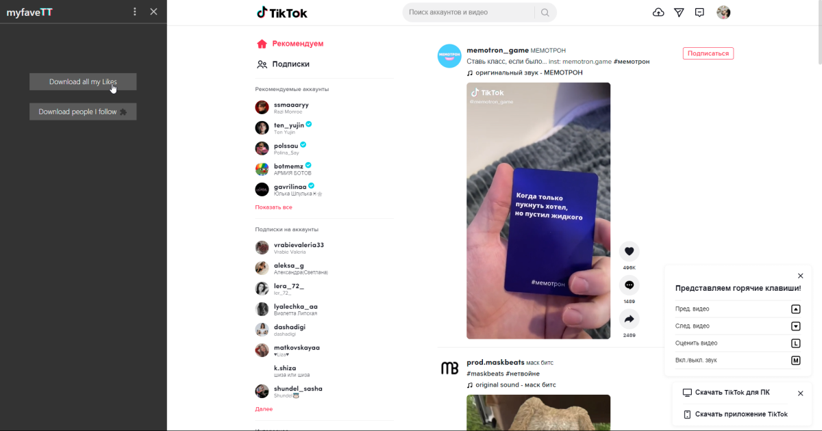 В этот раз я расскажу как максимально просто скачать все видео, которые вы лайкнули в TikTok. Для этого нужно установить расширение для Chrome под названием myfaveTT - download all your tiktok Likes. После этого войти в веб-версию TikTok под своим аккаунтом.