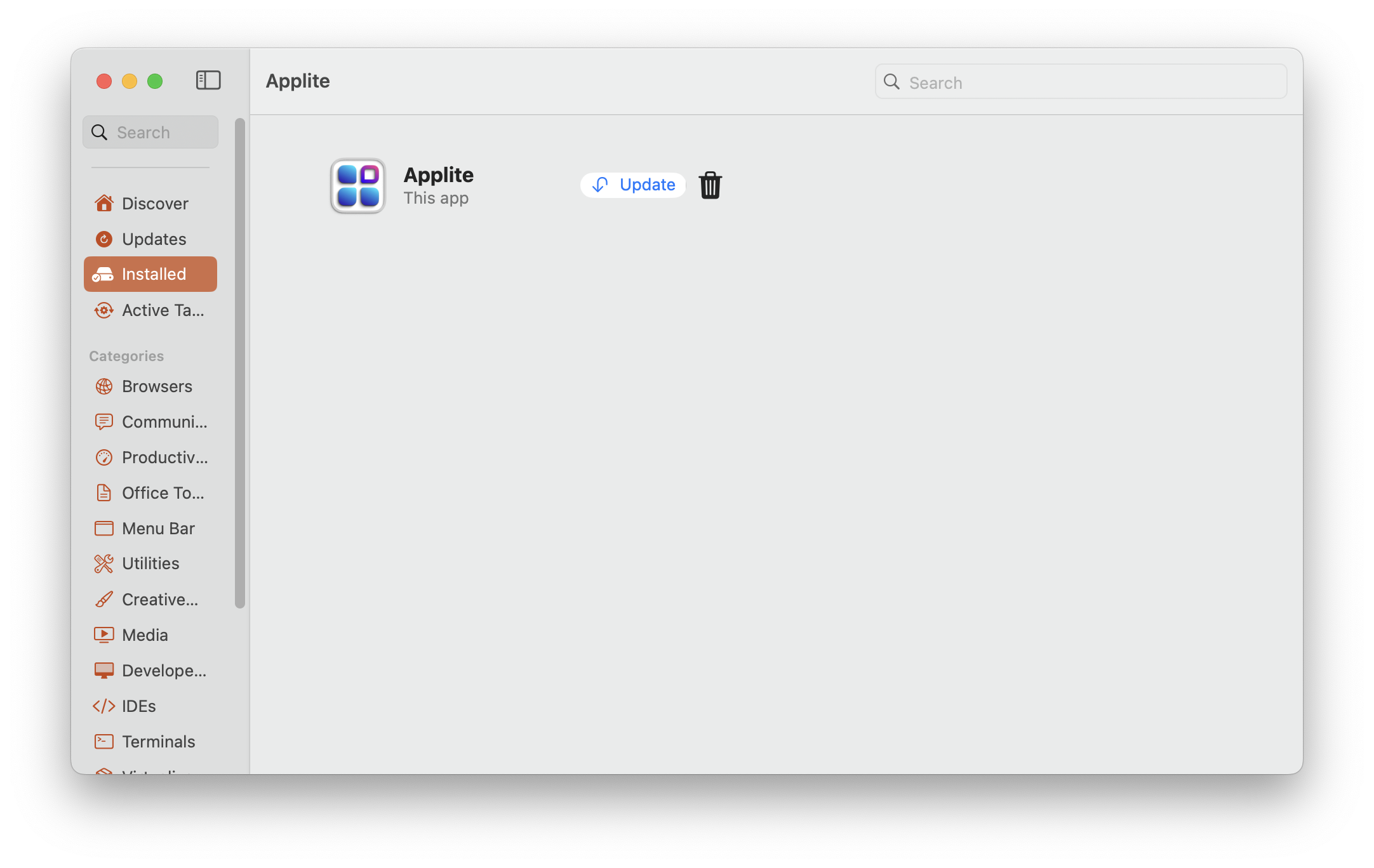 Тогда вам понадобится опенсорсная утилита Applite, которую можно скачать с сайта разработчика или просто установить с помощью команды brew install --cask applite.