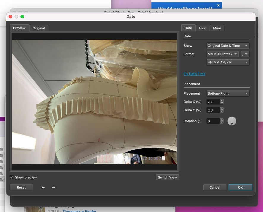 На macOS нам понадобится приложение BatchPhoto, за которое, к сожалению, придётся заплатить $29.95.