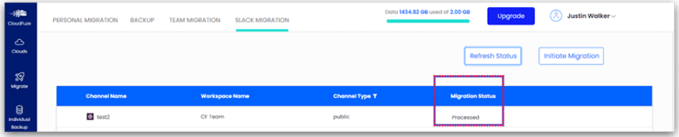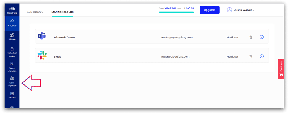 Шаг 3. Перейдите на вкладку Slack Migration, которая находится на левой панели сервиса.