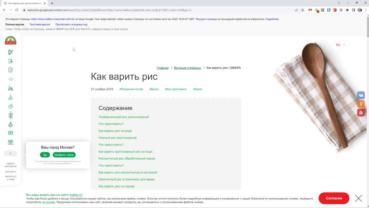 После чего откроется сохранённая версия страницы, и вы сможете почти полноценно воспользоваться нужным сайтом.