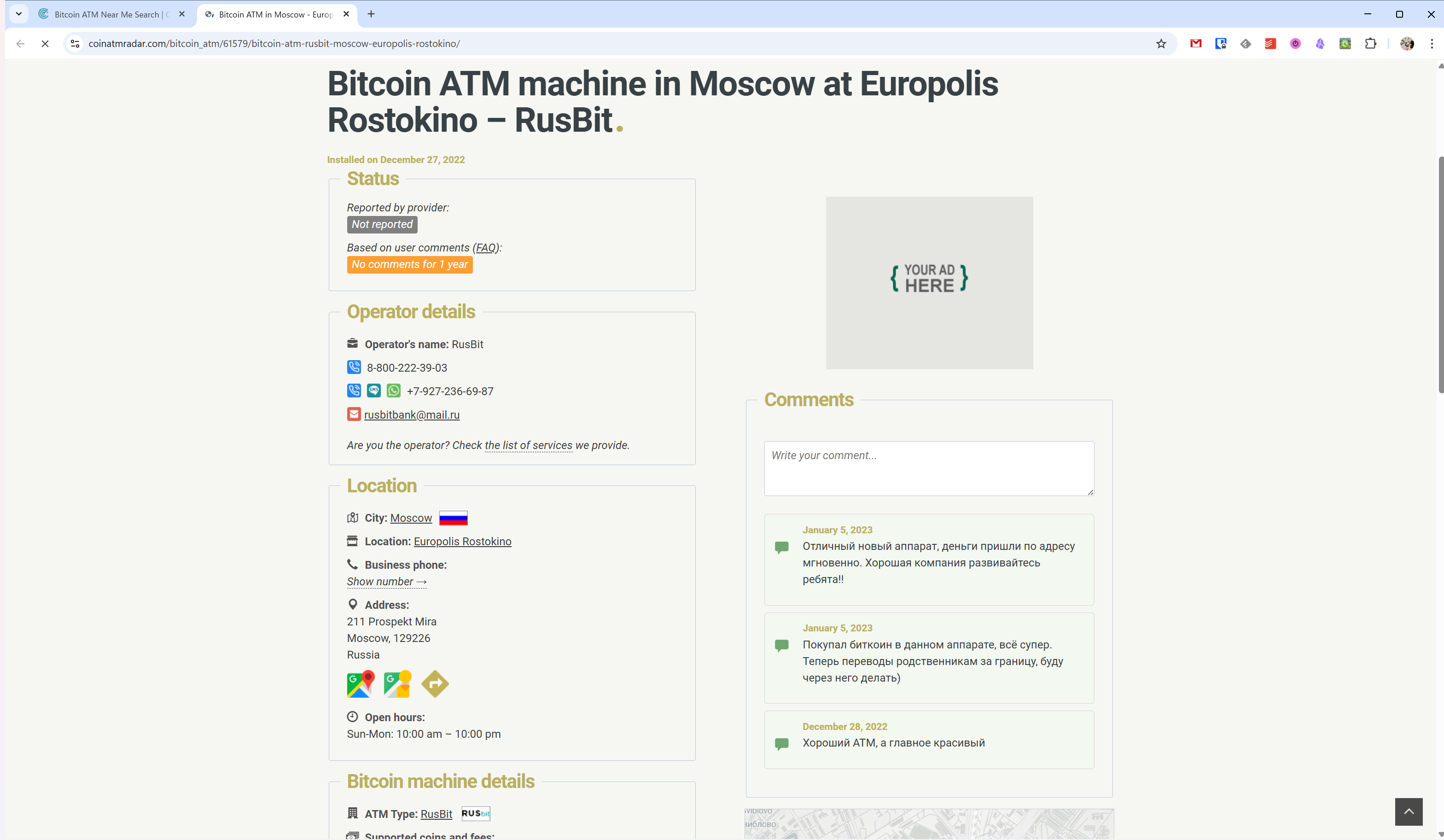 Сделать это можно с помощью сервиса Bitcoin ATM Map, на котором собраны банкоматы с основной информацией об их работе.