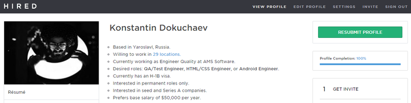 Hired вакансии нацелены на инженеров, дизайнеров, продукт-менеджеров и тому подобное. Все, что от вас требуется - заполнить свой профиль и, если вы пройдете модерацию, то сможете получать сразу по несколько предложений о работе в день.