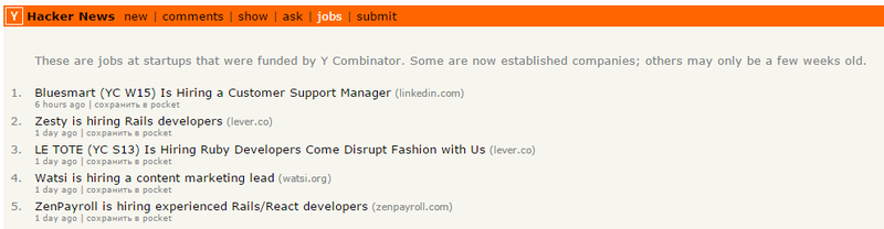 Hacker News - своеобразная доска объявлений с вакансиями в различных компаниях. Некоторые из них появились совсем недавно, другие на рынке уже много лет.