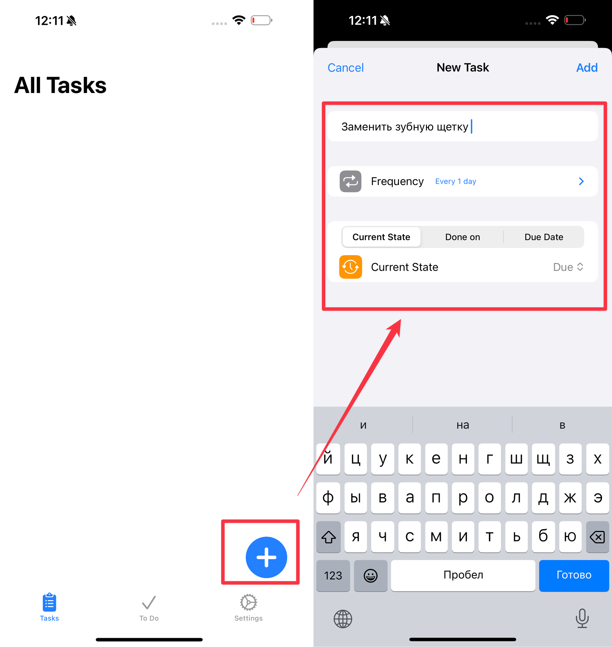 Для этого в приложении есть всего две вкладки: Tasks и To Do. Начну с первой, ведь именно здесь добавляются дела.