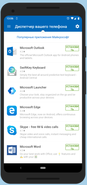 Затем нужно установить приложение «Ваш телефон» из Windows Store. Во время установки придётся войти в свою учётную запись Windows Live, получить СМС на телефон, установить там приложение «Диспетчер вашего телефона» и выдать пару разрешений. После чего нужно подождать первую синхронизацию, и всё сразу же начинает работать.