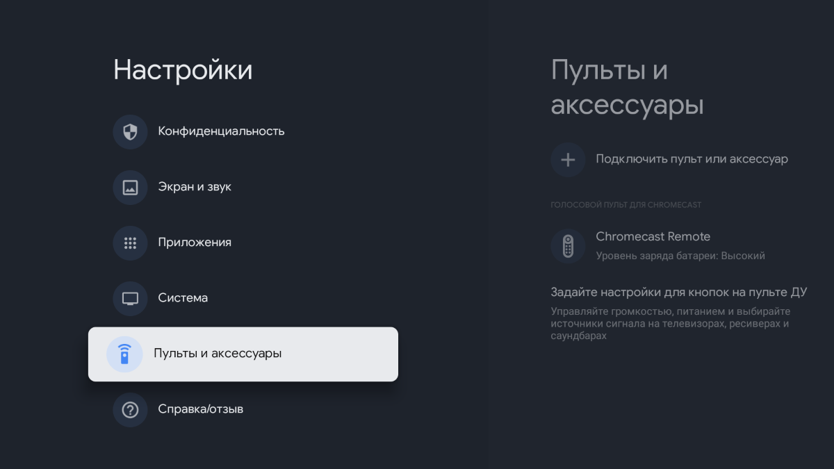 После чего устройство появится при поиске в разделе Настройки > Пульты и аксессуары.