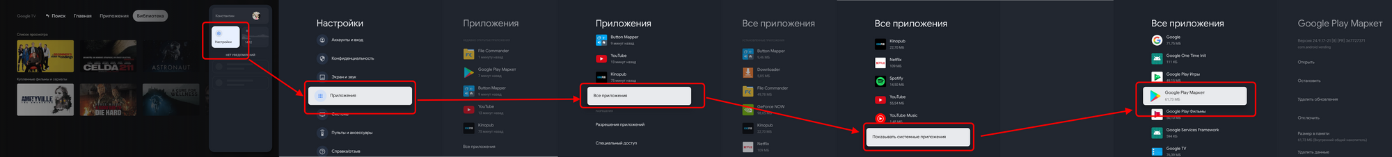 Первый шаг — это установка самого приложения. На Android TV нет прямого доступа к Google Play. Разработчики почему-то его спрятали от пользователей.