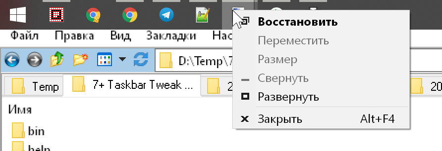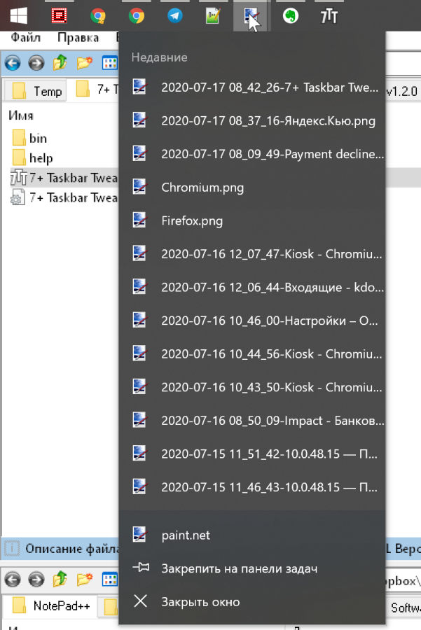 Можно настроить действие правой кнопки мыши при нажатии на иконку в панели задач. По умолчанию открывается список переходов, но его можно заменить на отображение стандартного контекстного меню.