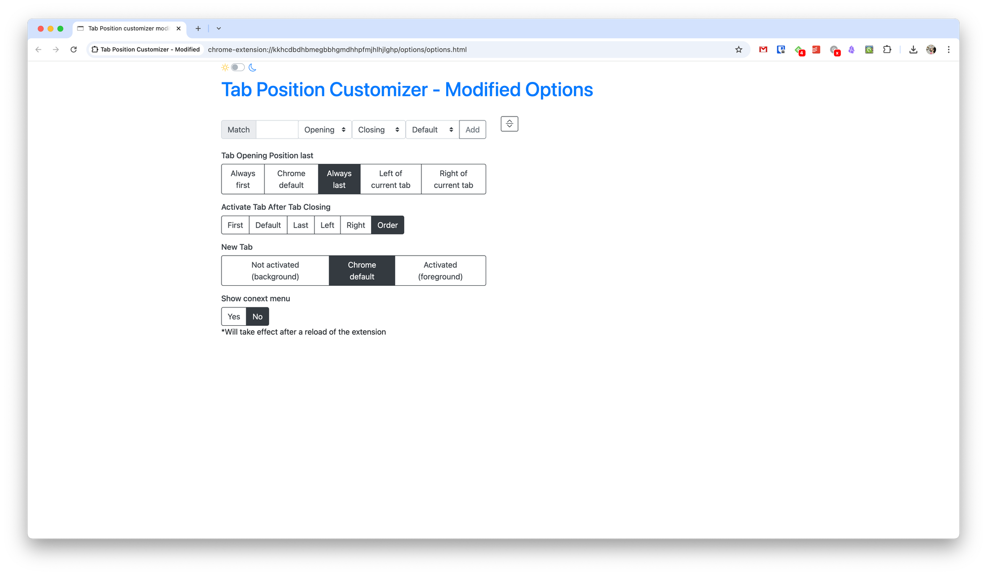 Я просто не могу работать с дефолтным поведением переключения и открытия вкладок в Google Chrome. Если переходить по вкладкам и открывать их, то в конечном счёте получается куча-мала и полный рандом в их расположении.