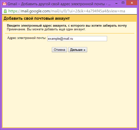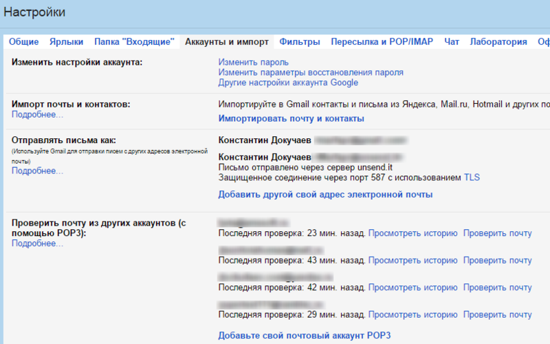 Перейдите в настройки почты, в раздел «Аккаунты и импорт». В разделе «Проверить почту из других аккаунтов» нажмите «Добавить свой почтовый аккаунт POP3»: