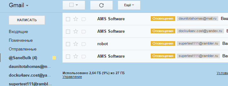 После чего к ярлыкам SaneBox добавятся ярлыки всех ваших почтовых ящиков. А SaneBox будет обрабатывать всю вашу почту: