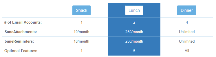 При оплате сервиса у вас есть три варианта подписки, каждый из которых по умолчанию поддерживает определённое количество почтовых аккаунтов. От одного до четырёх: