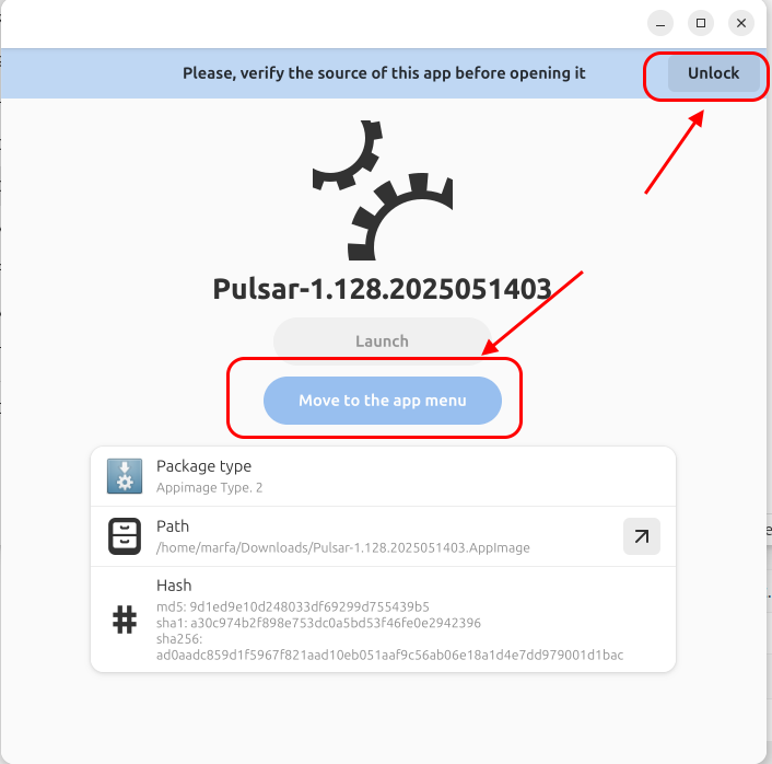 Я покажу решение на примере приложения Pulsar, которое можно скачать в AppImage формате.
