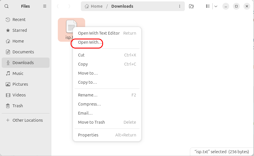 Всё очень просто. В файловом менеджере перейдите к нужному файлу и в контекстном меню выберите пункт Open With....