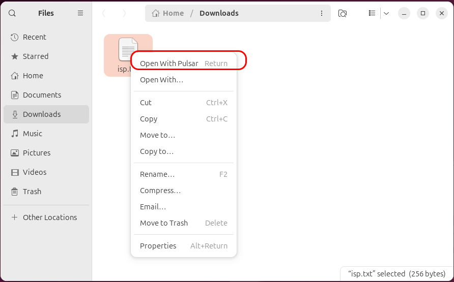 На этом всё. Теперь все .txt файлы будут открываться в Pulsar. И в контекстном меню появится соответствующий пункт.