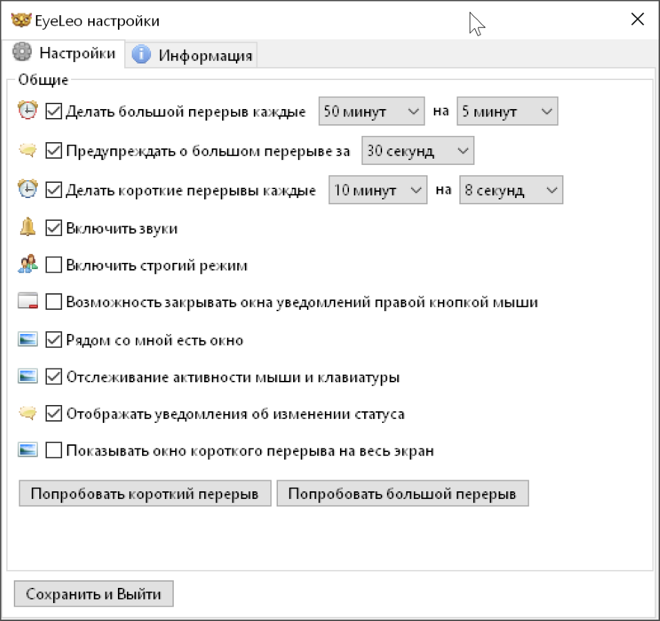 EyeLeo – приложение для Windows, которое будет напоминать делать перерывы и давать отдых глазам.