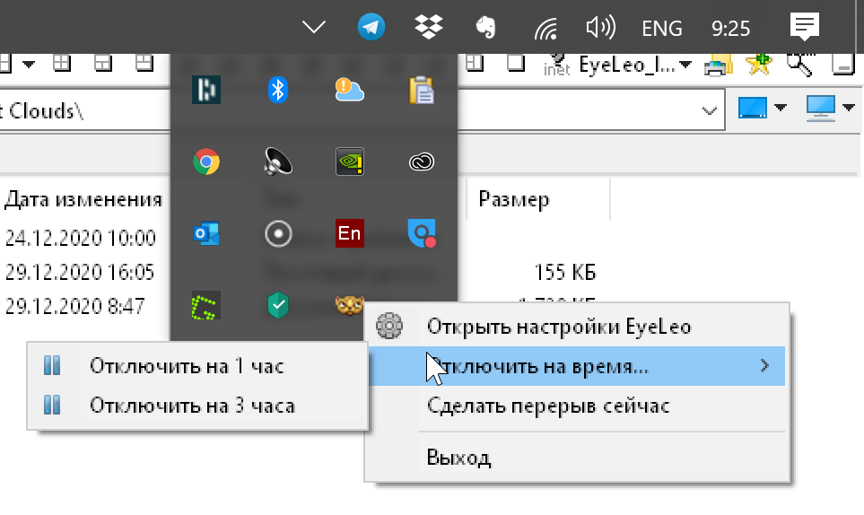 Здесь можно задать длительность и периоды для перерывов, а также указать поведения для оповещений. Из контекстного меню можно утилиту можно временно отключить.
