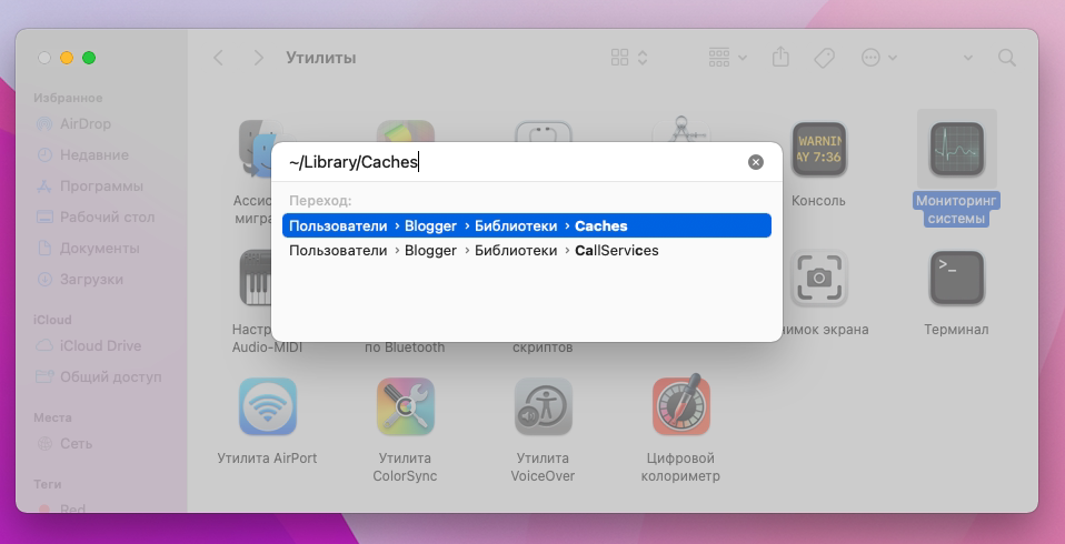 ~/Library/Cachesи нажмите Enter