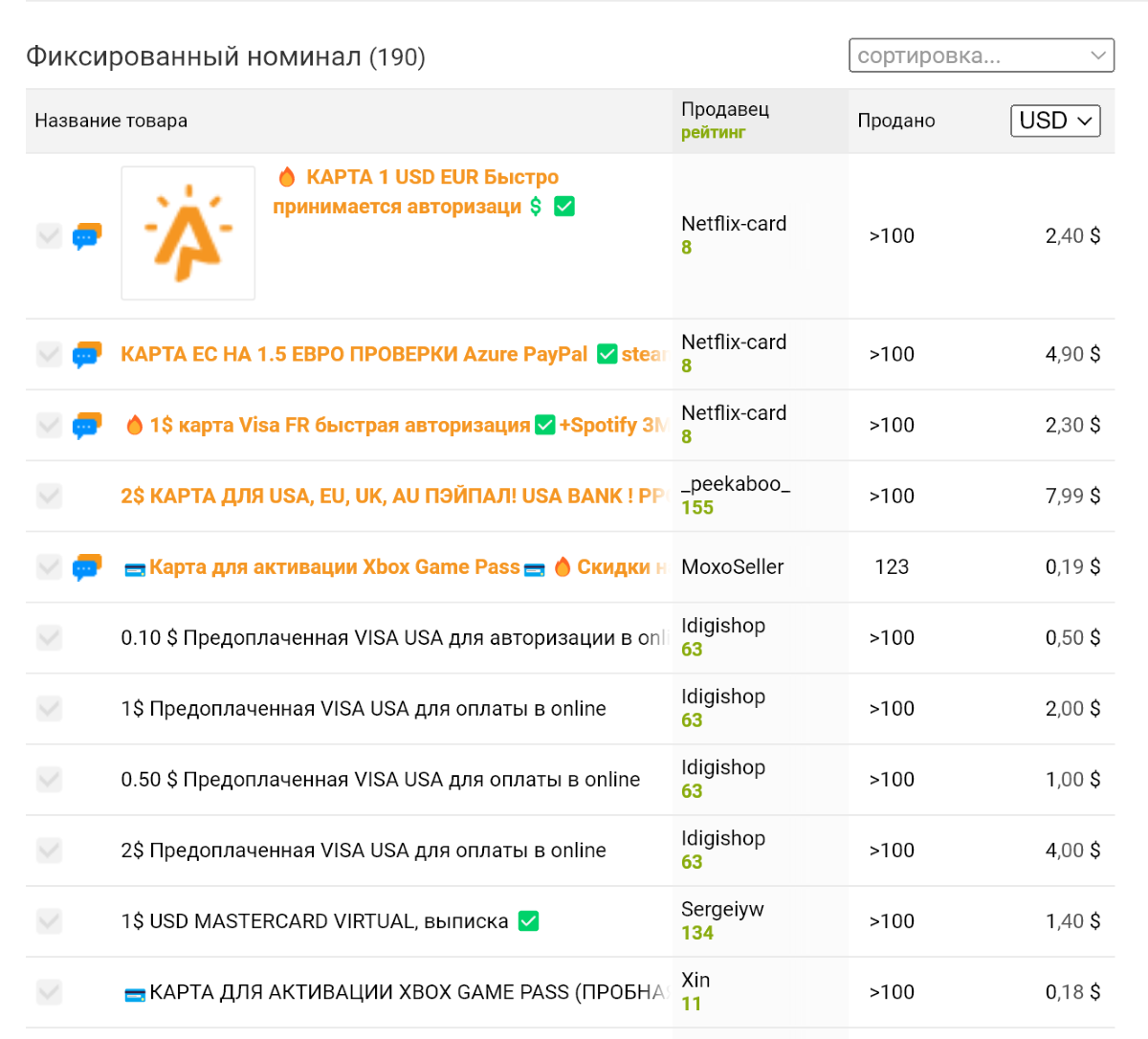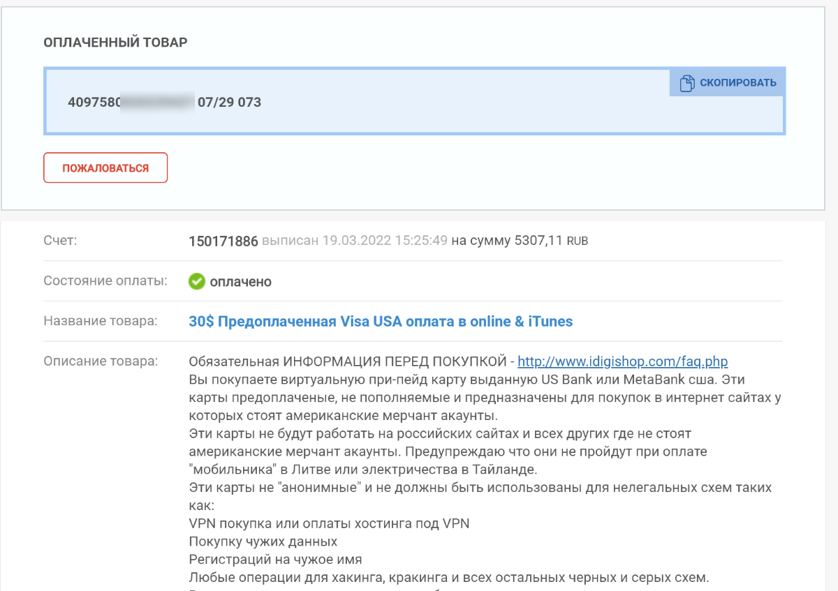 Некоторые товары особенно карты Visa/Mastercard очень далеки от легального поля.